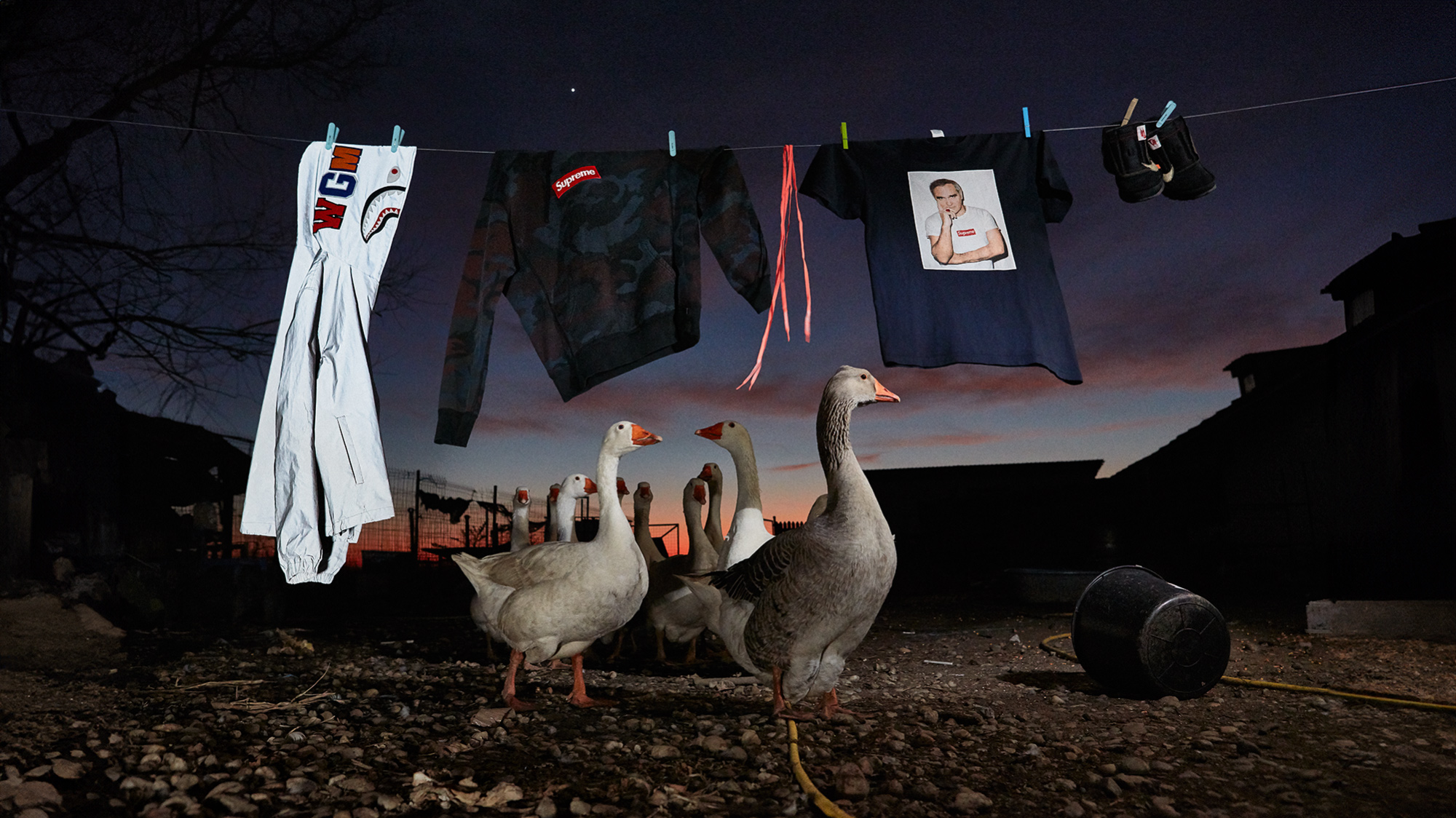 Clothes, footwear and geese. Bâldana, Dâmbovița county